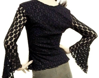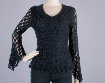 S Vintage 1990s Bill Blass Shirt Top Black Sheer Bell Sleeve Etsy